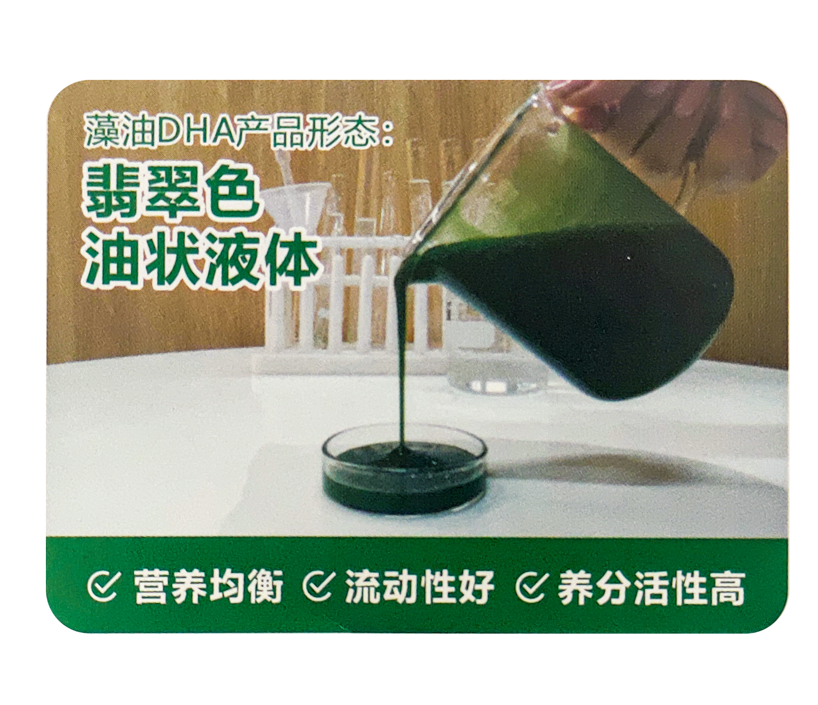 經(jīng)過多年的反復(fù)田間試驗(yàn)而研制成功的新型天然海洋生物肥料藻油DHA。該技術(shù)極大地保留了海洋生物的天然活性成分。